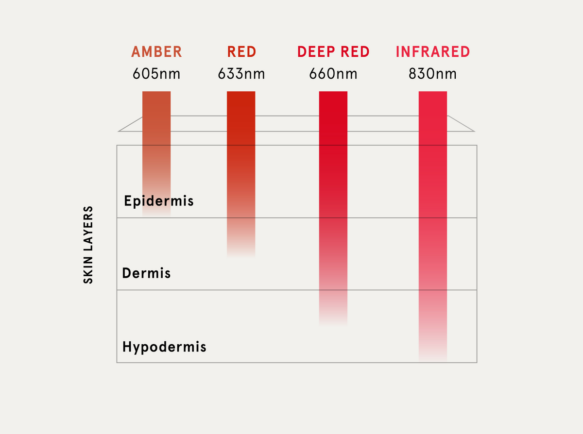 Each wavelength of light penetrates different layers of the dermis and hypodermis for total results you can see.
